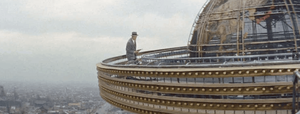 Não que a idéia seja nova – muito ao contrário. Mas é muito boa, e por isso já foi usada diversas vezes. Basta lembrar da sequência no parque de diversões de Pacto Sinistro/Strangers on a Train, que Alfred Hitchcock lançou em 1951, quatro anos apenas antes deste filme aqui.