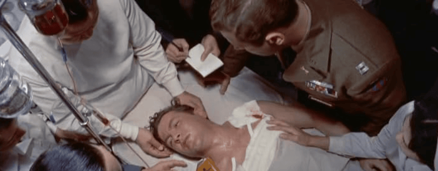 Temos então uma sequência na sala de hospital em que Webber está sendo operado. Os médicos trabalham, os militares americanos também, fazendo perguntas ao sujeito.