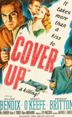 Cover Up, no Brasil Delito Oculto, de 1949, não tem grandes astros – os principais atores são Dennis O’Keefe, William Bendix e Barbara Britton. O diretor, Alfred E. Green, embora de carreira respeitável, não figuraria em qualquer lista dos mais importantes de Hollywood. É bem pouco conhecido: não consta em oito dos nove guias que consultei. E, no entanto, é um ótimo filme.