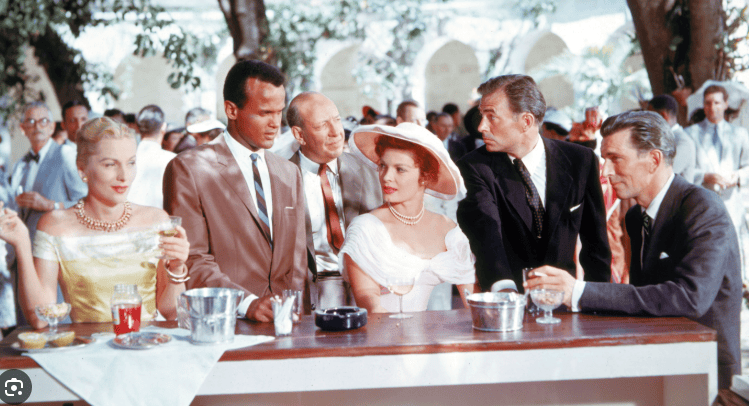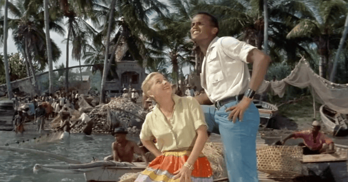 Euzinho aqui, quieto no meu canto, me sentei para a ver o filme pela primeira vez agora no YouTube com a melhor boa vontade. Tinha, é claro, ouvido falar nele desde sempre – embora nunca tivesse tido a oportunidade de vê-lo antes. A canção de mesmo nome, essa ouço sempre; tinha até esquecido do filme, na verdade, e acreditava que, quando Harry Belafonte diz “this is my island in the Sun”, estava se referindo à Jamaica de seus pais. (Ele nasceu no Harlem, em Nova York.)