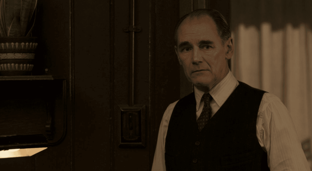 Em menos de dois minutos, o filme, com direção de arte afiadíssima, montagem rápida e o talento gigantesco desse brilho de ator que é Mark Rylance, nos demonstra que estamos diante de um profissional extremamente cuidadoso, perfeccionista, que tem imenso orgulho do que faz.