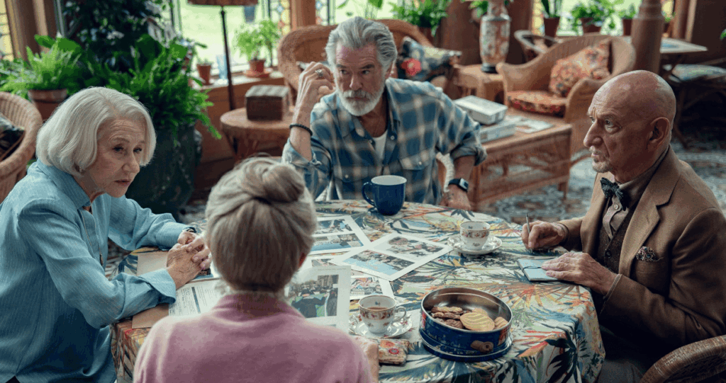 O Clube do Crime das Quintas-Feiras, caprichada produção de 2025, é uma gostosa diversão, uma bela trama sobre um grupo de quatro velhinhos que vivem em um lar de idosos de sonho, no idílico interior da Inglaterra, e se dedicam a solucionar crimes do passado. Estão se divertindo com isso quando acontecem dois assassinatos, bem diante deles, e que colocam em risco a própria existência do magnífico lugar em que vivem juntamente com mais dezenas de outros aposentados.