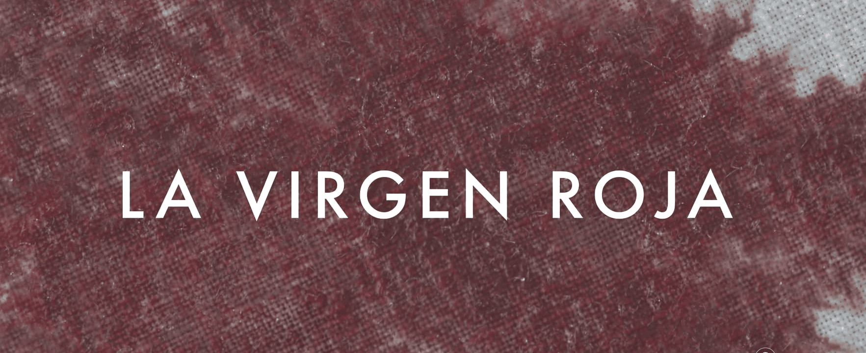 Vão surgindo os nomes das principais atrizes, em seguida o título La Virgen Roja, depois o da diretora, agora sobre um tecido de linho branco que vai se tornando vermelho com sangue derramado.