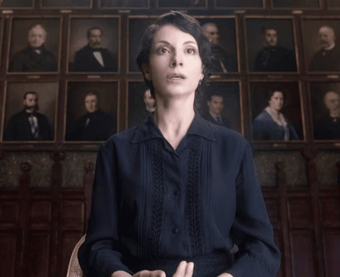 – “Graças à minha avidez intelectual e à riqueza de meus pais, tive uma educação sem limites.” Um letreiro informa que estamos na Galícia, em 1914. “Assim conheci os achados sobre aperfeiçoamento genético e a luta pelos direitos da mulher. Assim compreendi que nós, mulheres, tínhamos que moldar o futuro. Mas as idéias são inúteis se não forem postas em ação.”