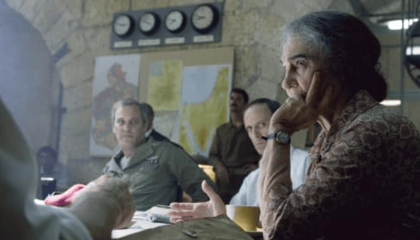 Uma das signatárias da Declaração de Independência de Israel, em 1948, Golda Meir, é bom lembrar, não era de direita, muito menos de extrema direita, e sim do Partido Trabalhista, de Yitzhak Rabin e Shimon Peres; foi primeira-ministra entre 1969 e 1974. Figura forte, marcante, ela foi interpretada por grandes atrizes – no teatro, por Anne Bancroft, e no cinema, por Ingrid Bergman e Judy Davis. Aqui, ela é o papel de Lynn Cohen (à direita na foto abaixo).