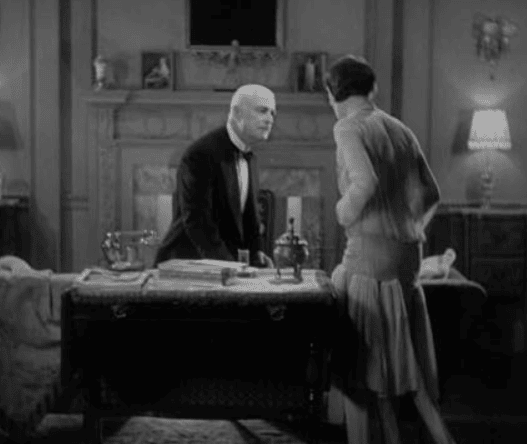 Philo Vance, um homem rico, elegante, bon-vivant, dono de uma inteligência viva, rápida, está acompanhado no camarote do teatro por um grande amigo, um senhor mais velho, Charles Spotswoode (o papel de Charles Lanem, à esquerda na foto abaixo) – que, veremos depois, é um bem-sucedido banqueiro.