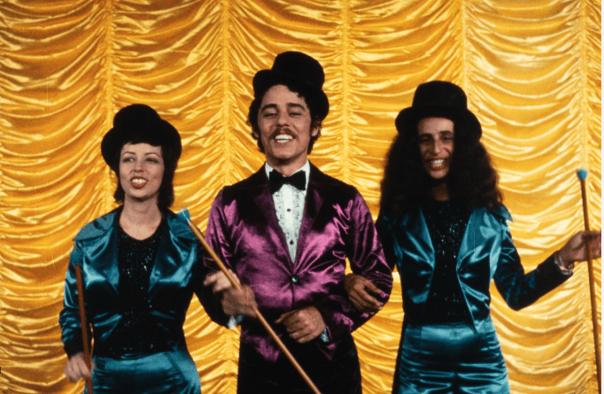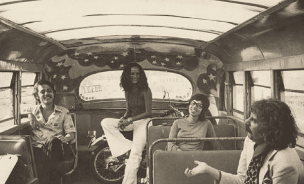 A trupe é formada pelos cantores Paulo (Chico), Mimi (Nara) e Rosa (Bethânia), o empresário Lourival (Hugo Carvana, na foto abaixo), se é que se pode usar o termo para aquela figura, e Cuíca (Antônio Pitanga), dublê de motorista da velha e sempre problemática jardineira e emérito tocador do brasileiríssimo instrumento que lhe dá o apelido carinhoso.